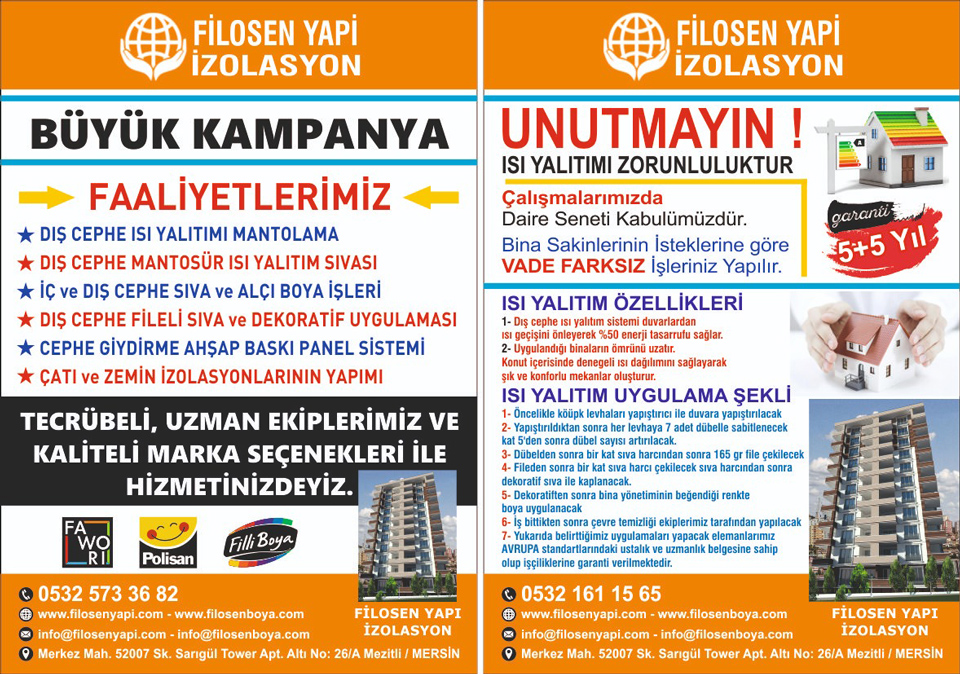 Filosen Boya İnşaat 1998 yılında Mehmet BEYDUZ tarafından kurulmuş olup, ülkemizde boya, izolasyon, yapı kimyasalları ve söve grubunda sektöründe yatırımlarda bulunmuştur.Yılların verdiği deneyim ve güç ile 2002 yılında endüstriyel harçlar alanında sayılı firmalar arasında yerini almıştır. 2005 yılında söve alanında faaliyet göstererek sektörün öncü firması olmuş olup firmamız bu sektörde üretici ve uygulamacı olarak siz apartman yöneticilerine, inşaat firmalarına ve müteahhitlere uygulama ve satış alanında hizmet vermektedir.